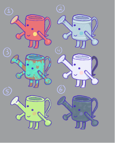 After the initial sketches, I went over to Pinterest to create a mood board of different types of watering cans for reference. Here I was searching for interesting textures, shapes, and designs.