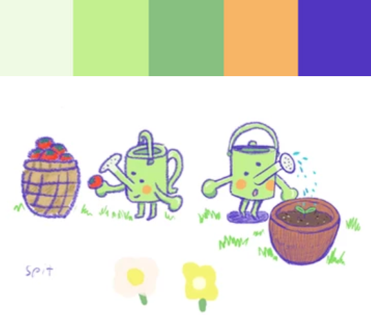 My idea for the composition was Spit watering some flowers. It would look similar to my sketch from earlier, but I wanted to add some more color with the addition of the flowers.
